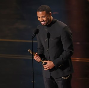 In Michael B. Jordan’s acceptance speech, he gave shout-outs to his parents, who were both in the room. “You all know how I feel about my mama,” he said, before asking, “Pops, where you at?” His father had flown in from Ghana to attend. Jordan then named many of the Black actors who came before him. “I stand here because of the people who came before me,” he said.